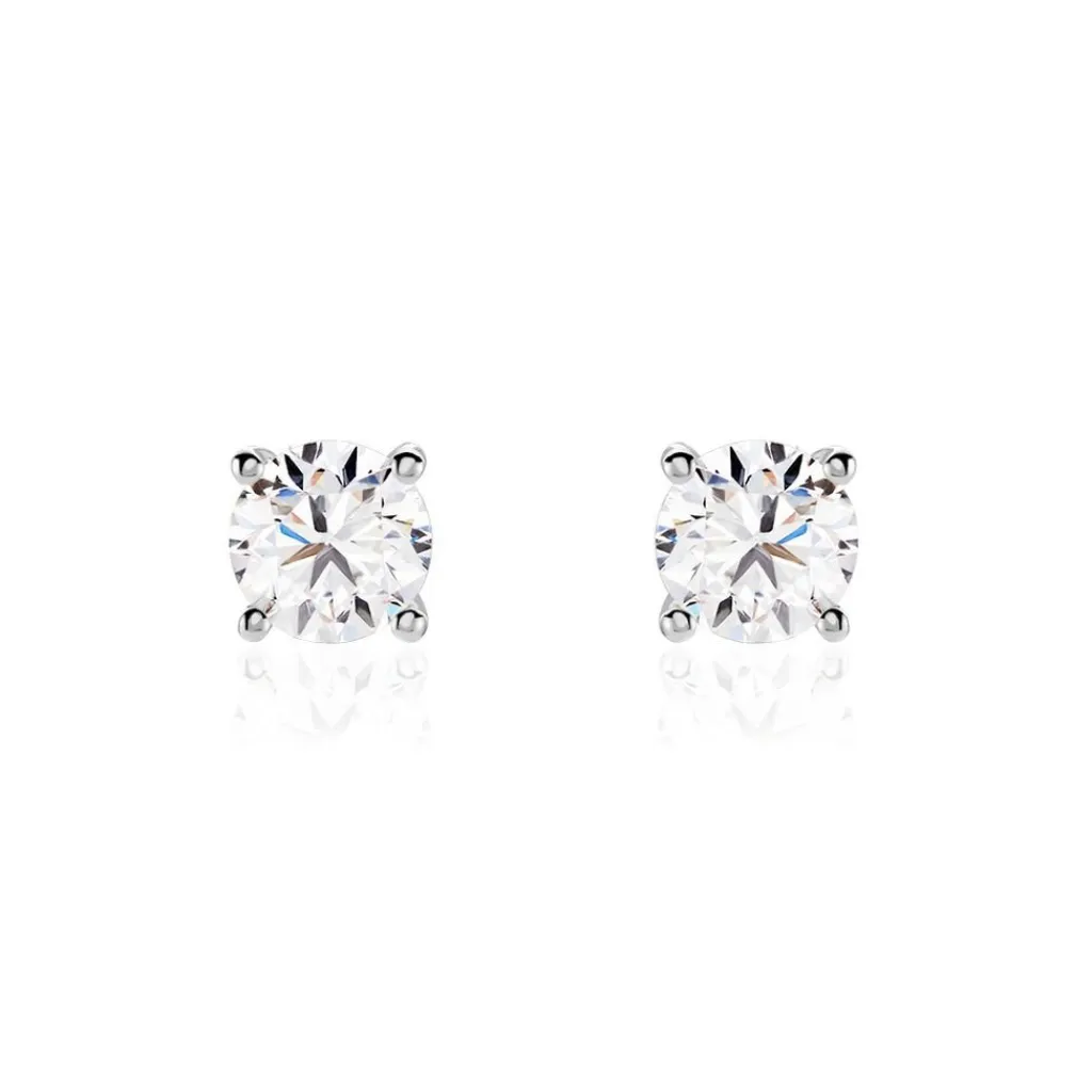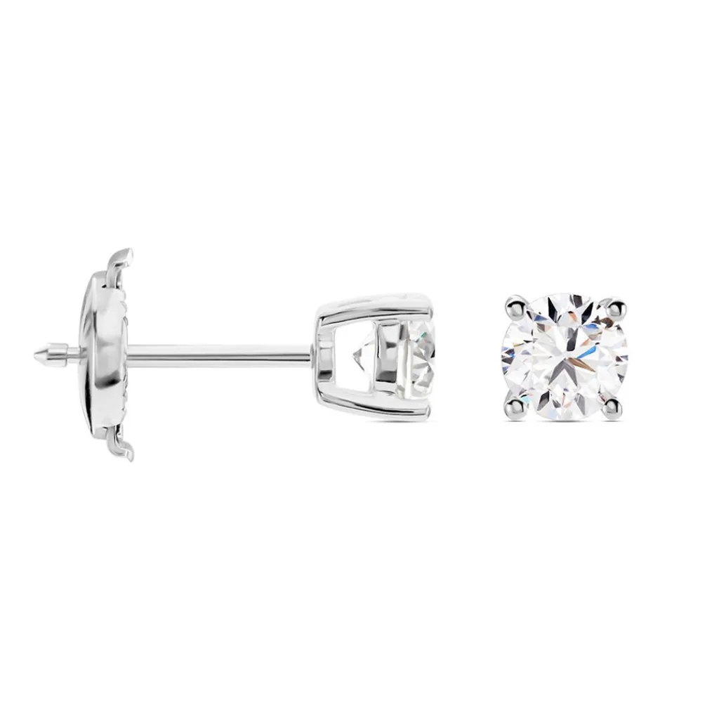 Boucles D’oreilles Puces Or Blanc 750/1000 Diamants 0.80cts Sertis 4 Griffes Systemes Alpas