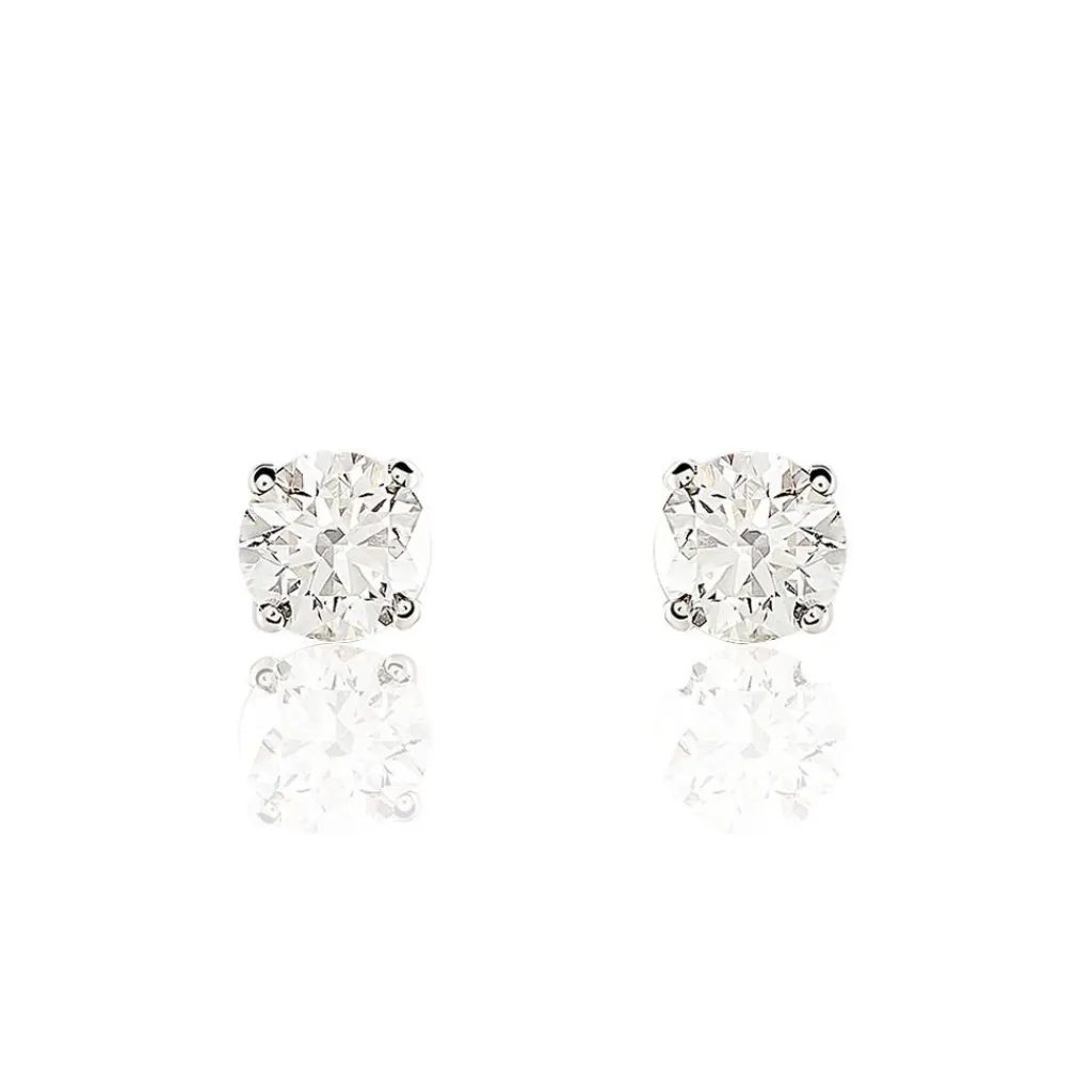 Boucles D’oreilles Platine 950/1000 Puces Diamants 0.40cts Sertis 4 Griffes Systemes Alpas