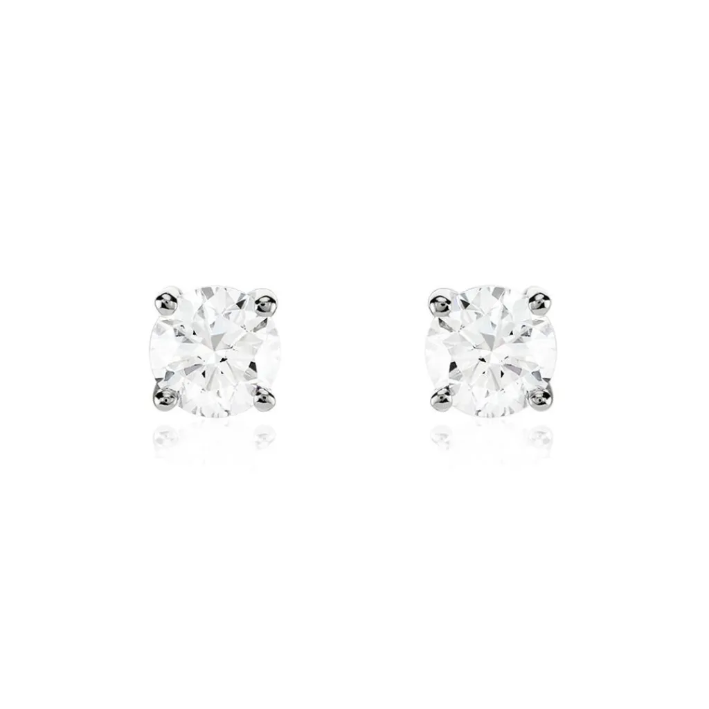Boucles D’oreilles Platine 950/1000 Puces Diamants 0.50cts Sertis 4 Griffes Systemes Alpas