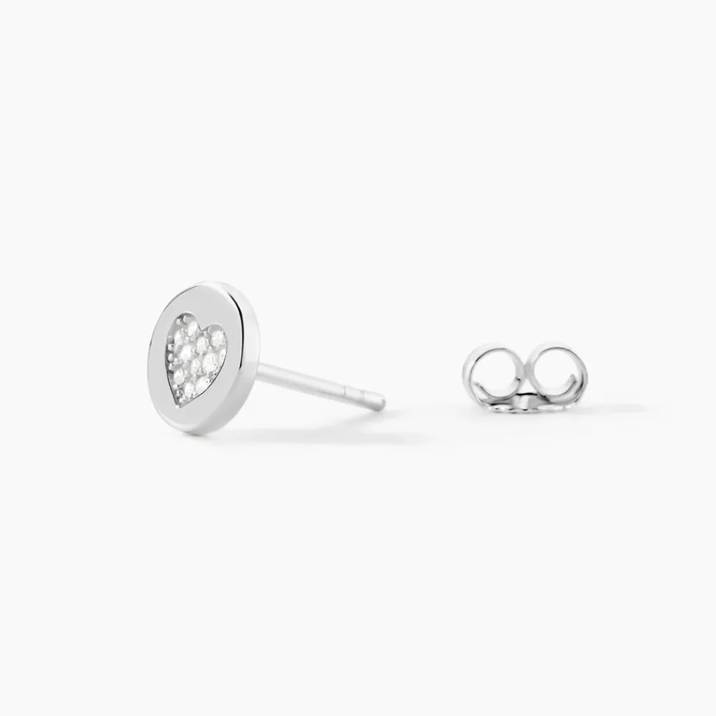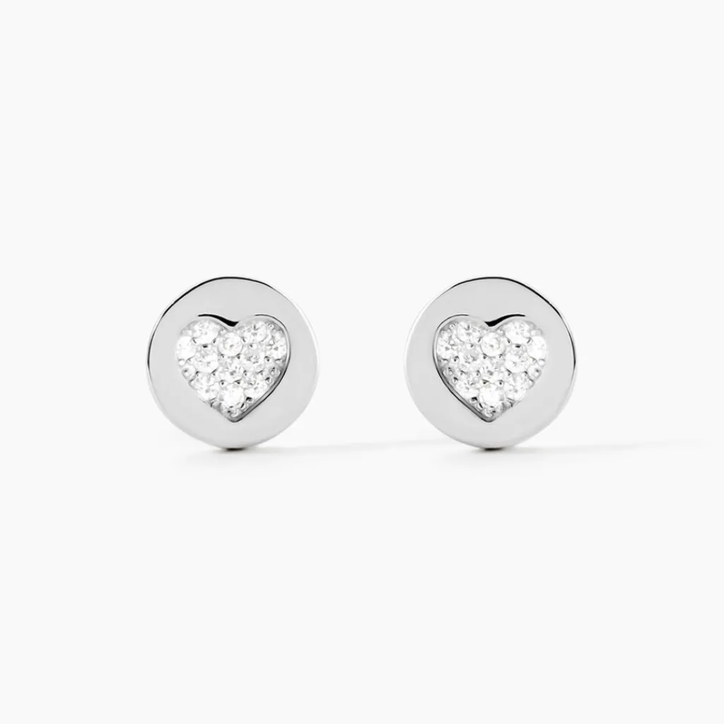 Boucles D’oreilles Puces Argent Blanc 925/1000 Pastilles Pavage C艙ur