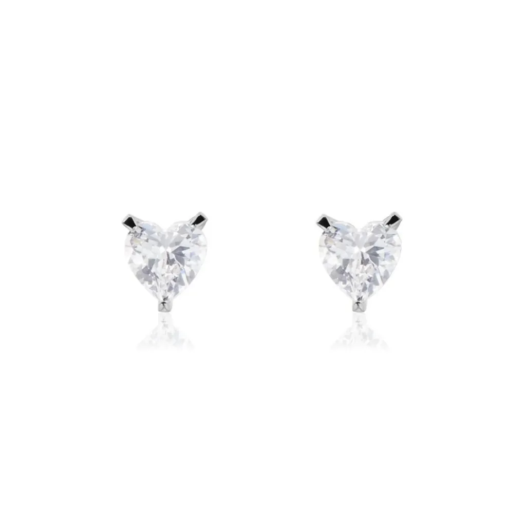 Boucles D’oreilles Puces Argent Blanc 925/1000 C艙urs Serti Griffes Oxydes De Zirconium