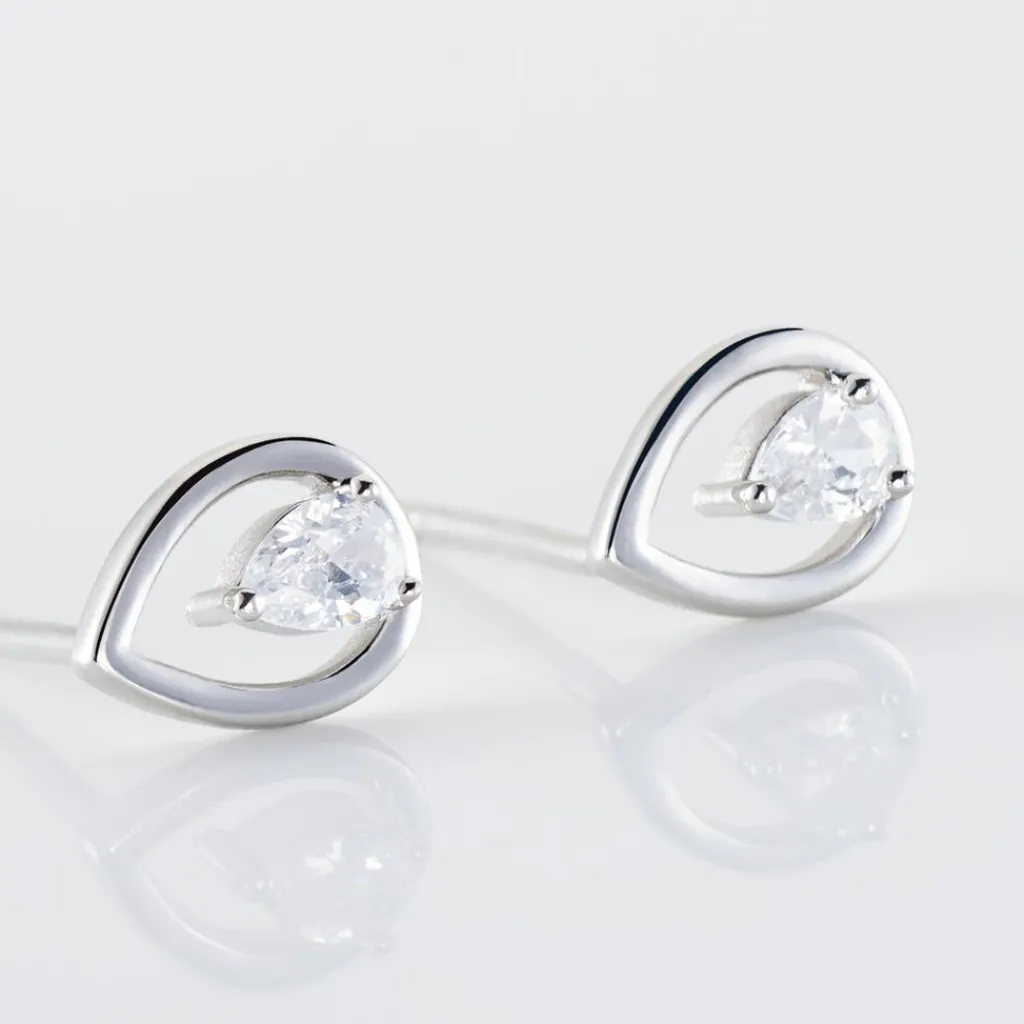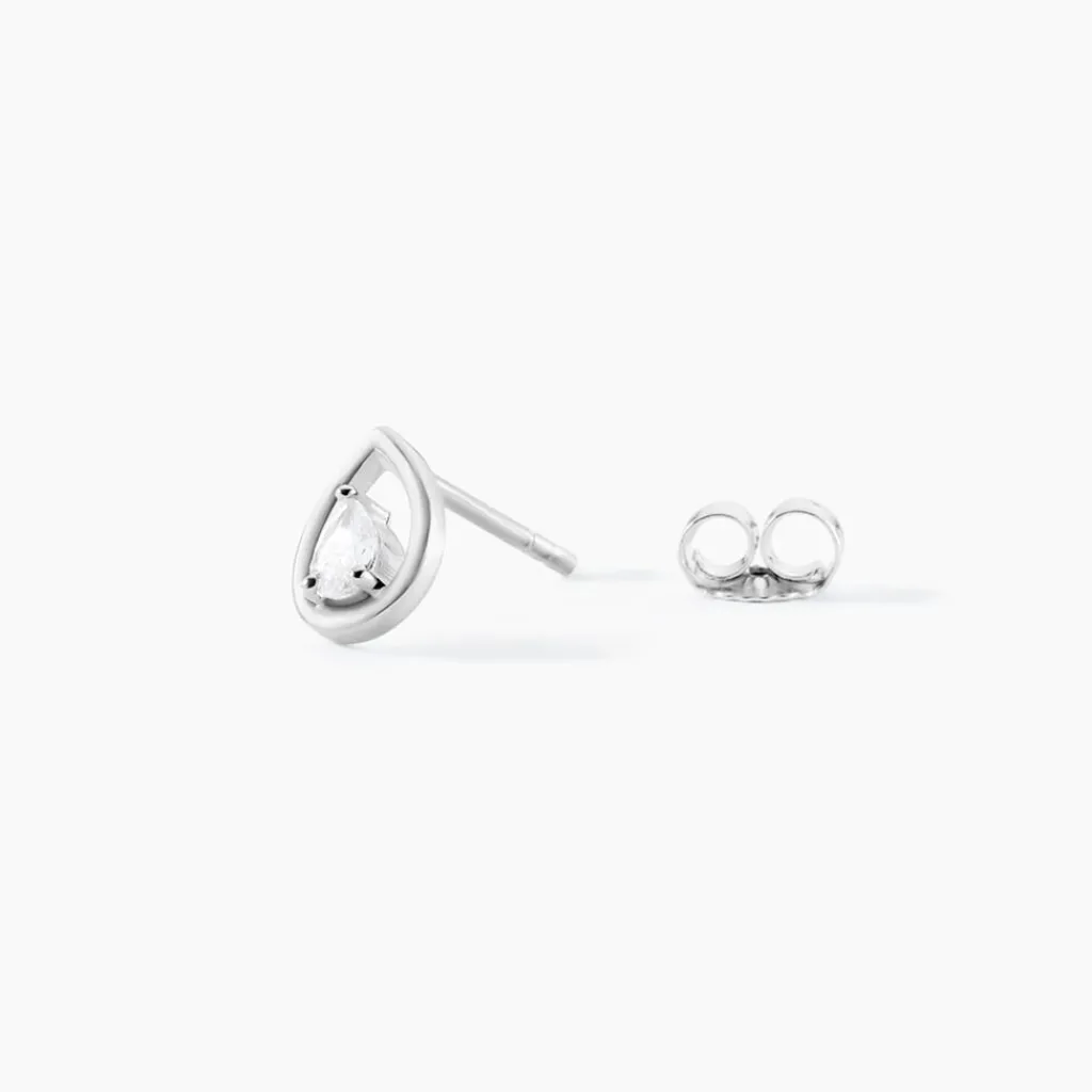 Boucles D’oreilles Puces Argent Blanc 925/1000 Gouttes Sertis Griffes 1 Oxyde De Zirconium