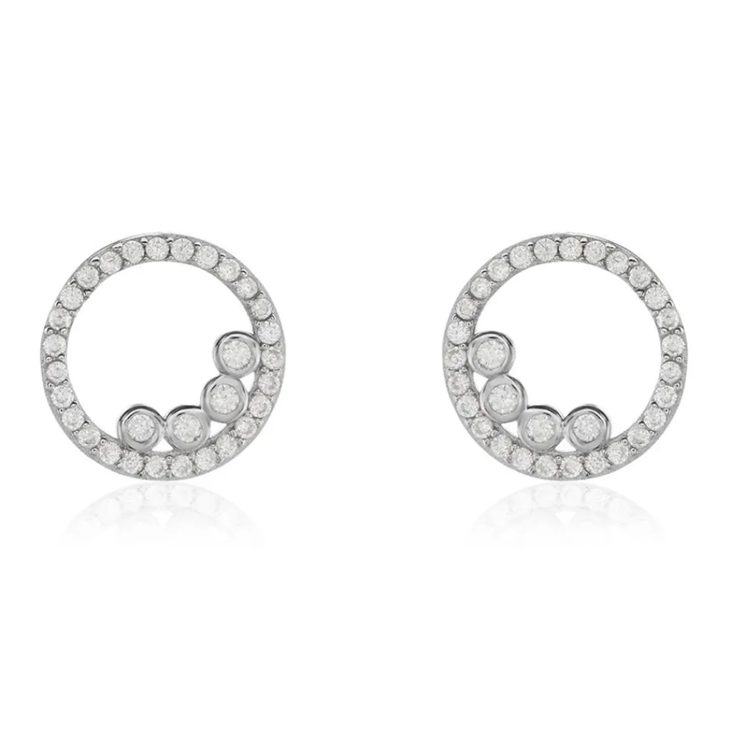 Boucles D’oreilles Puces Argent Blanc 925/1000 Cerles Pavage Et Serti Clos Oxydes De Zirconium
