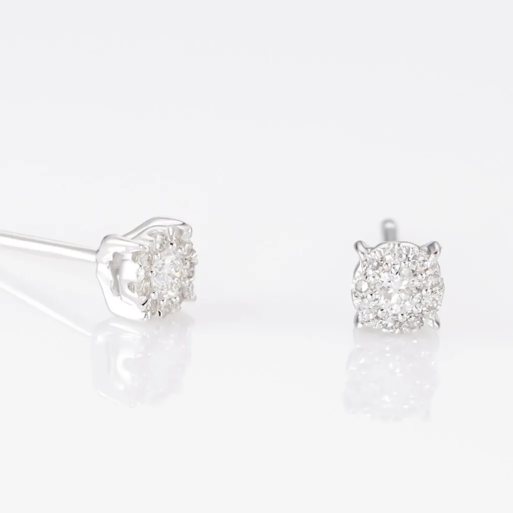 Boucles D’oreilles Or Blanc 375/1000 Puces Multipierres Diamants 0.1cts