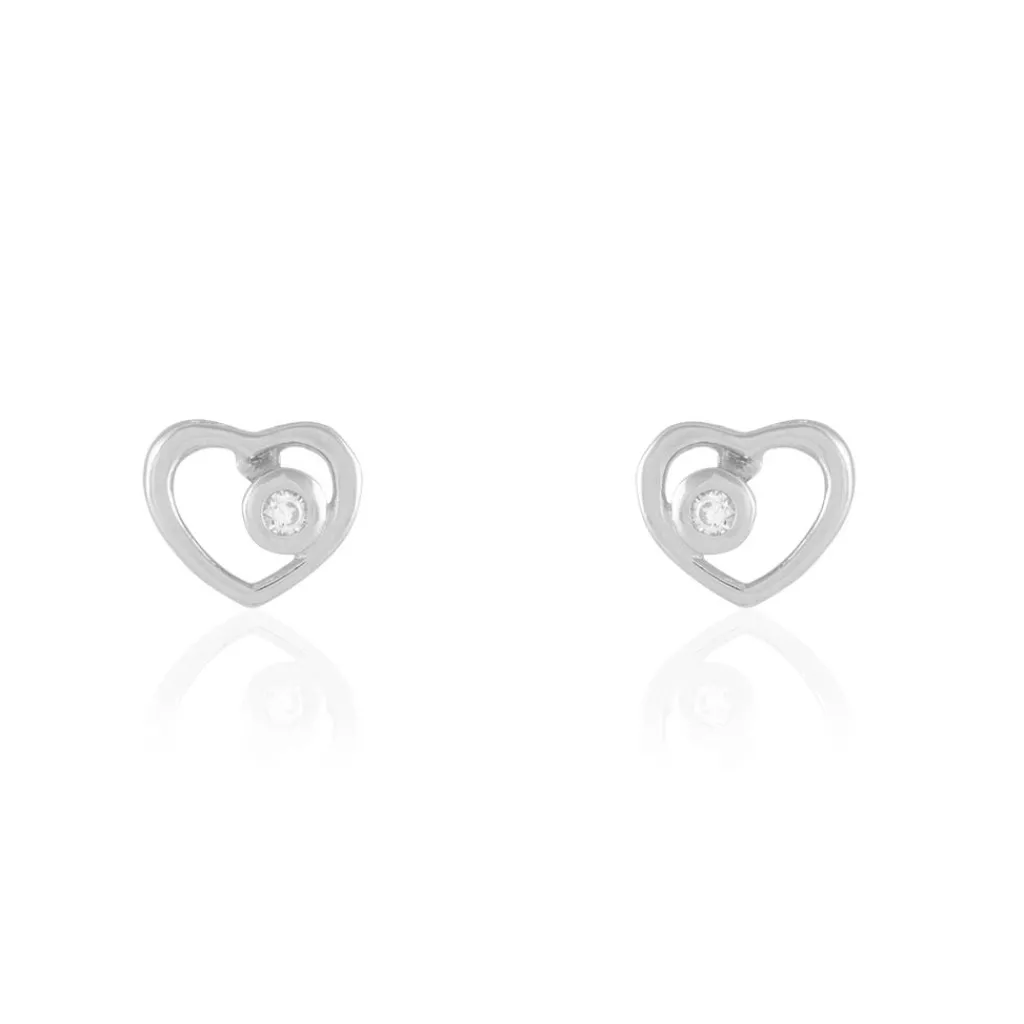 Boucles D’oreilles Argent Blanc 925/1000 Formes Coeurs Avec Oxydes De Zirconium Serti Clos