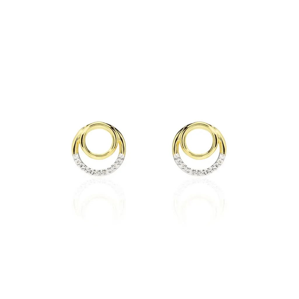 Boucles D’oreilles Or Jaune 375/1000 Double Cercle Ajoure Semi Pavage Diamants