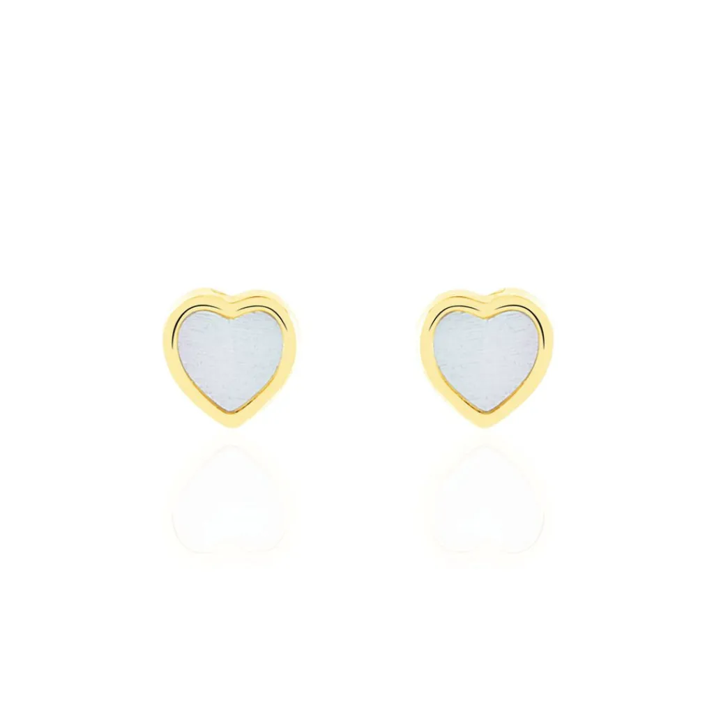 Boucles D’oreilles Or Jaune 375/1000 C艙ur Nacre
