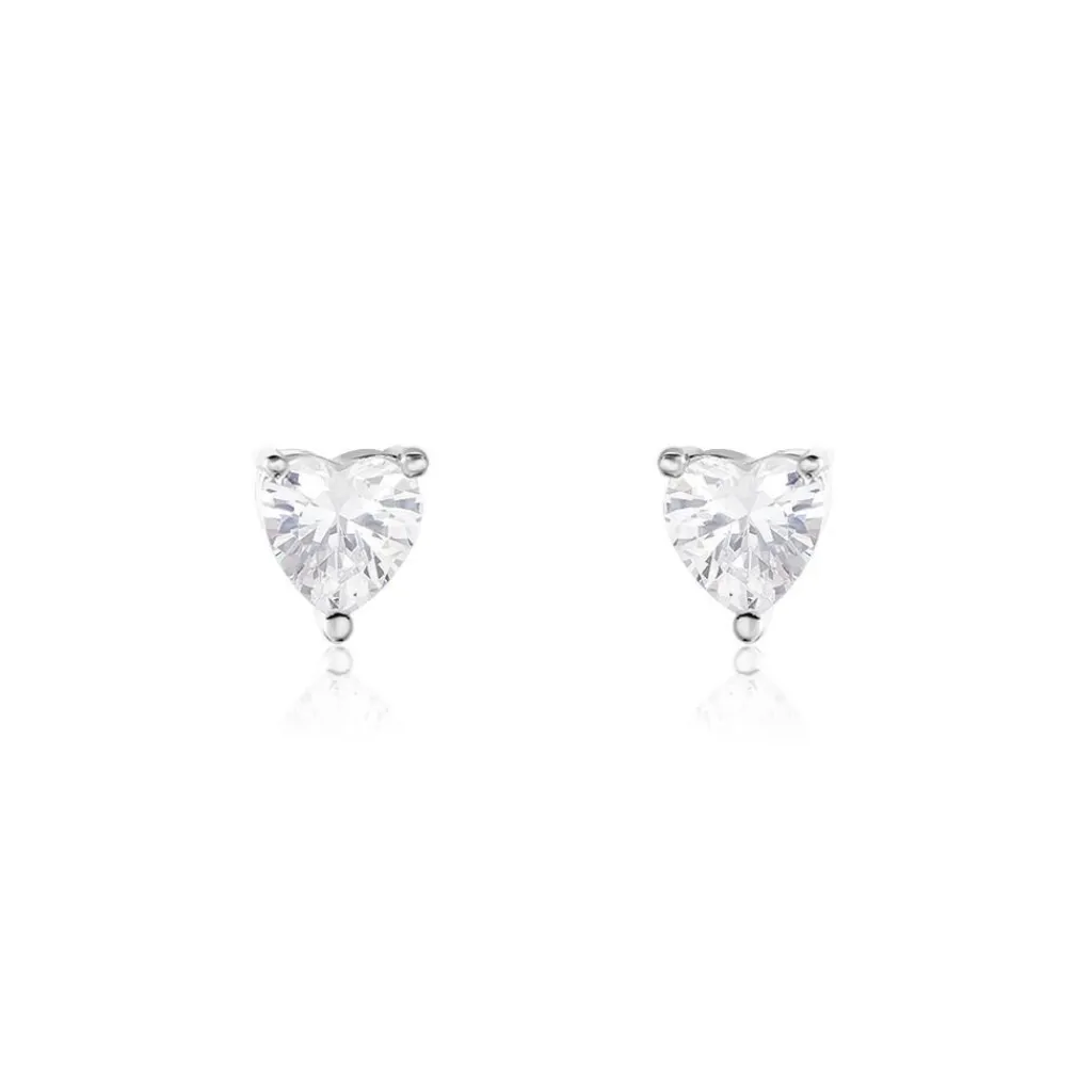 Boucles D’oreilles Argent Blanc 925/1000 Oxydes De Zirconium Coeur