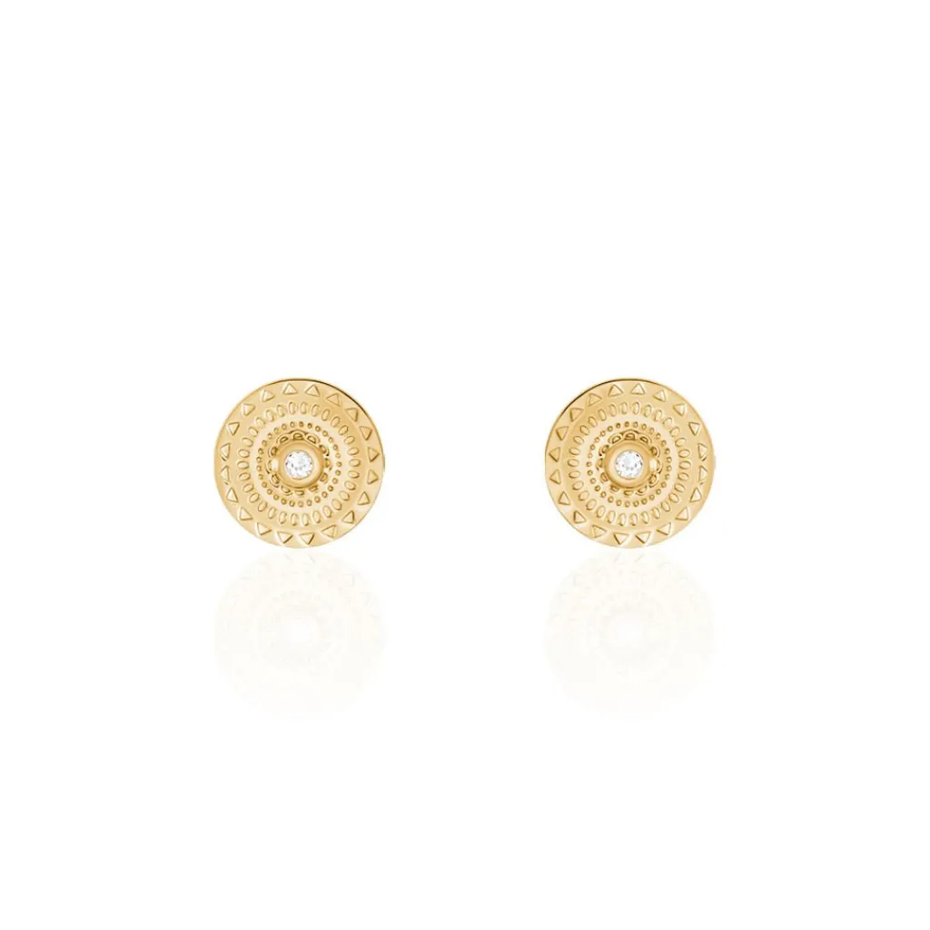 Boucles D’oreilles Puces Plaqué Or Jaune Motifs Cercles Ciseles Et Oxydes De Zirconium