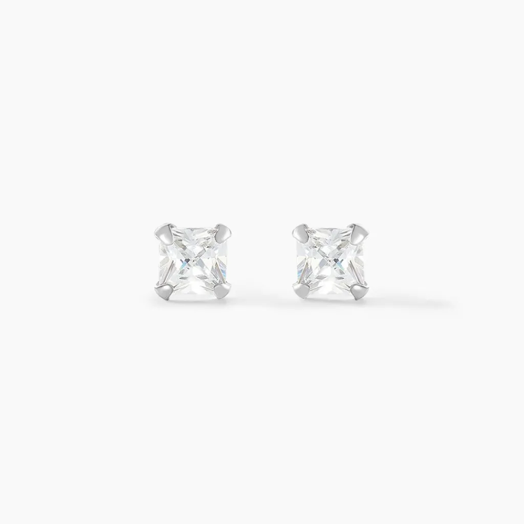 Boucles D’oreilles Puces Argent Blanc 925/1000 Oxydes De Zirconium