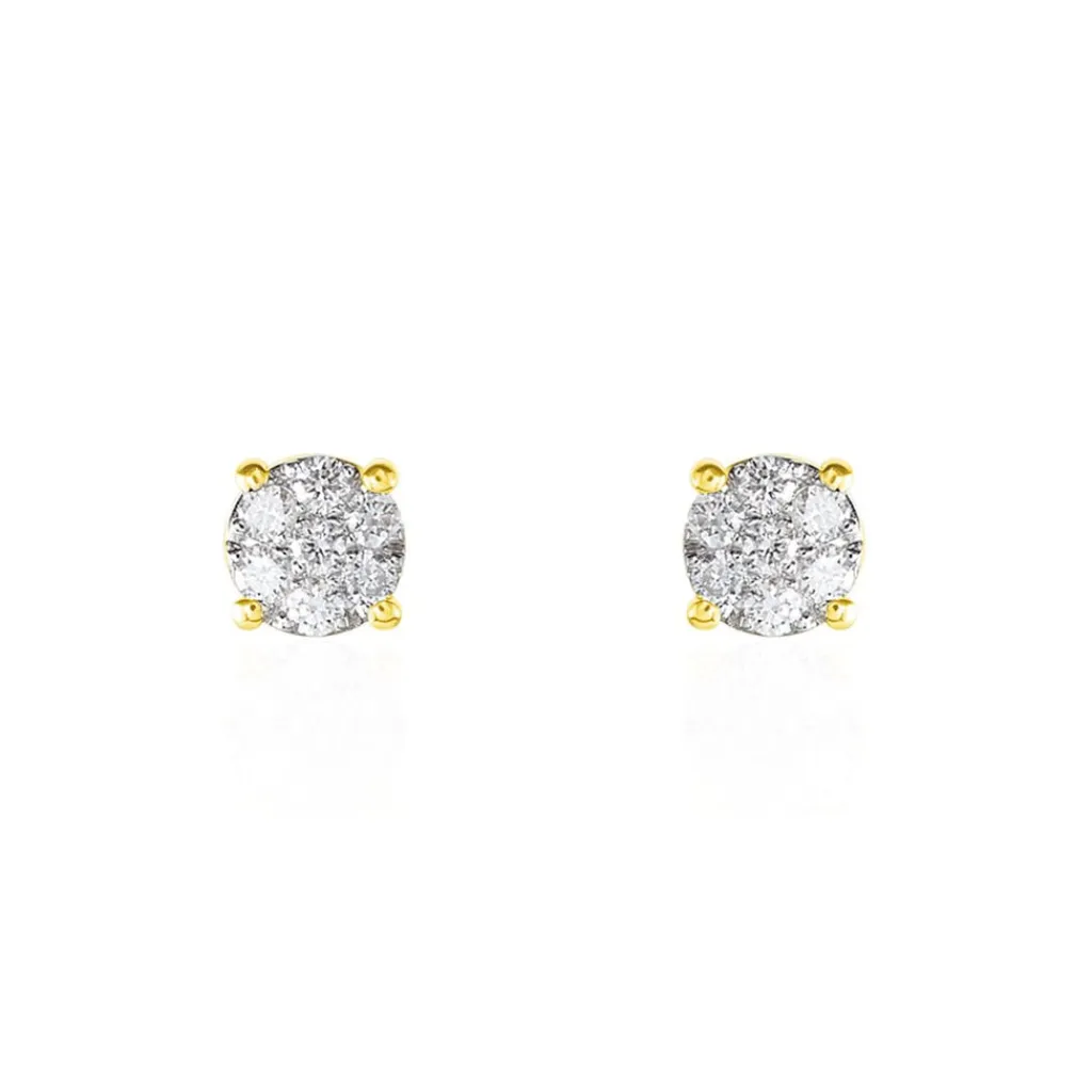 Boucles D’oreilles Or Jaune 750/1000 Diamants Synthetique Multi Pierres 0.35cts