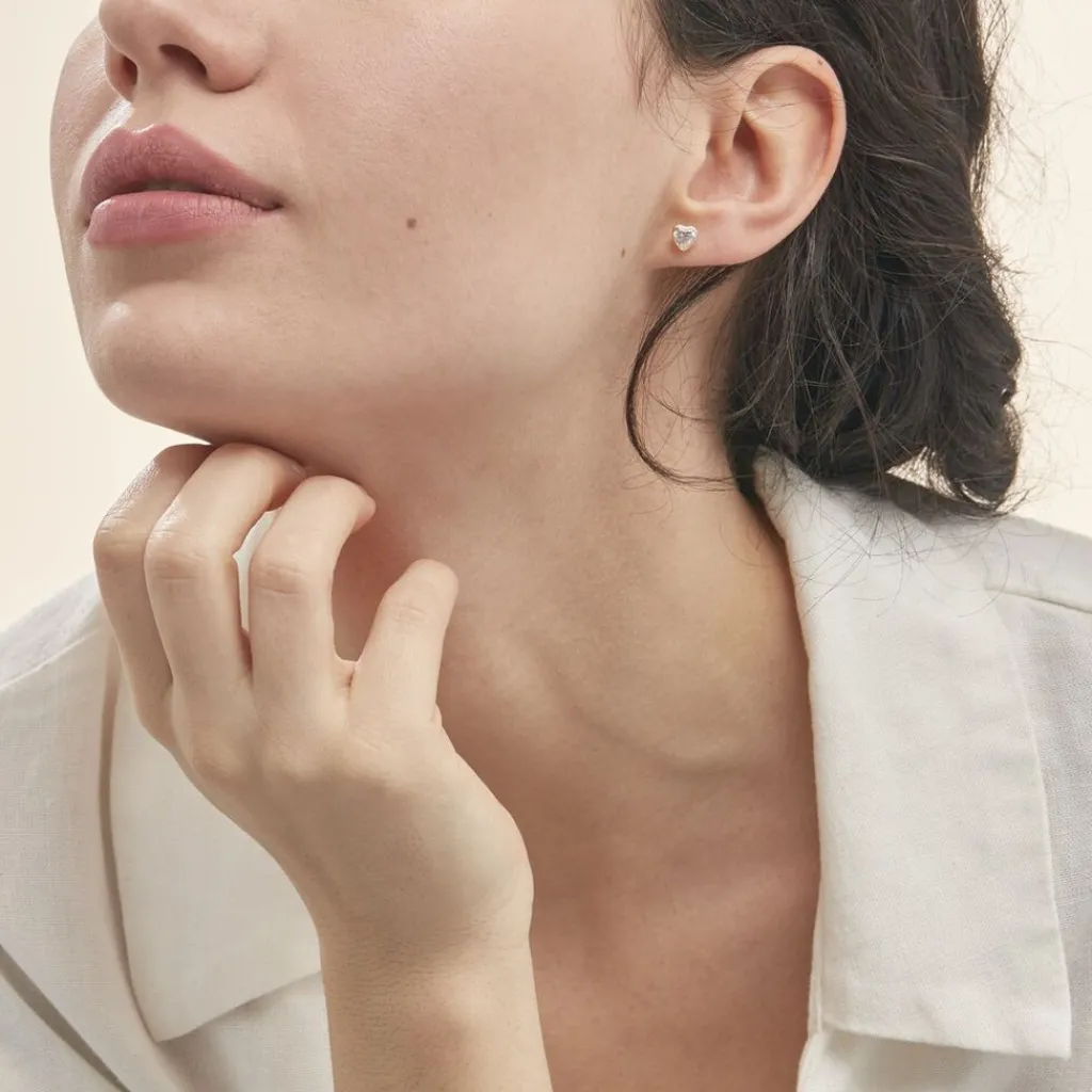Boucles D’oreilles Or Jaune 375/1000 Puces Forme C艙ur Serti Clos