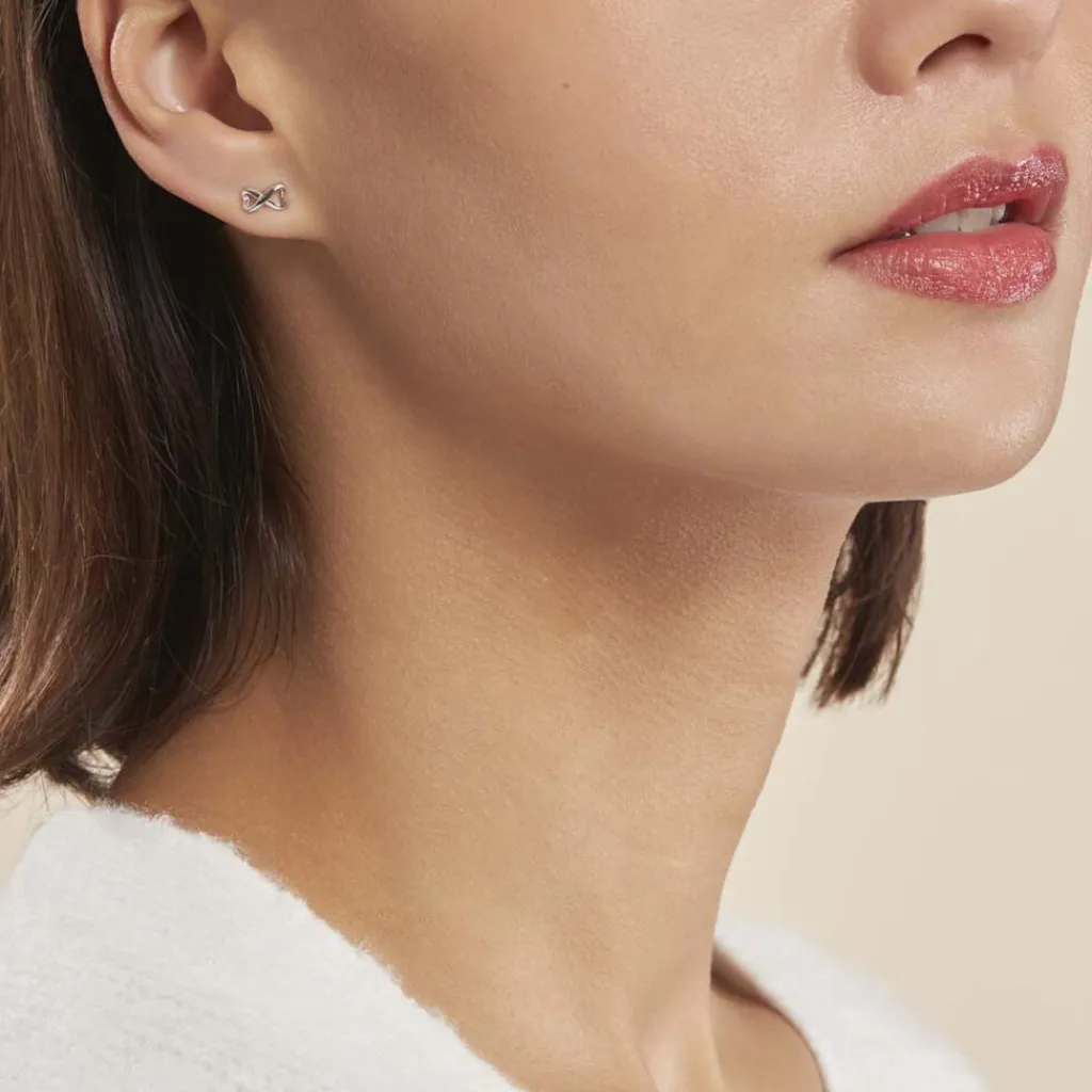Boucles D’oreilles Puces Argent Blanc 925/1000 Infinis C艙urs