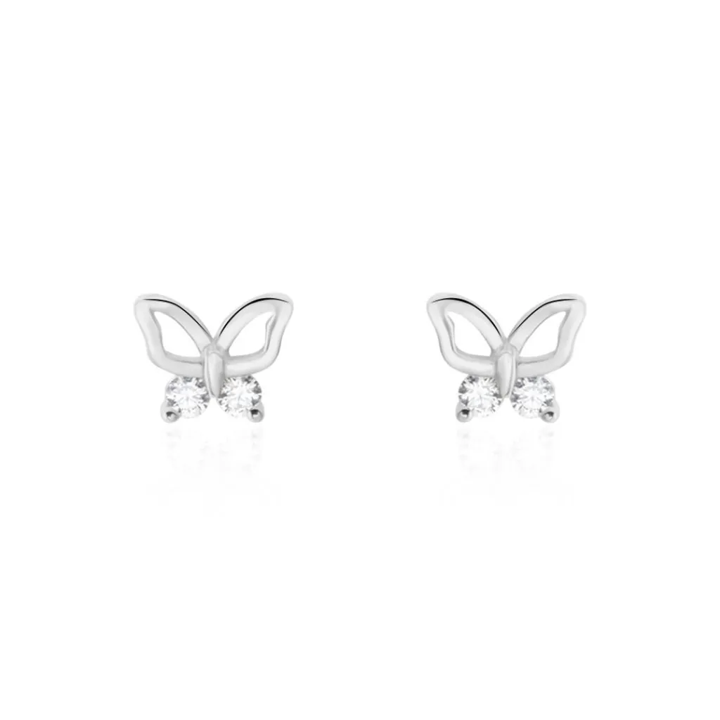 Boucles D’oreilles Puces Argent Blanc 925/1000 Papillons Sertis Griffes Oxydes De Zirconium