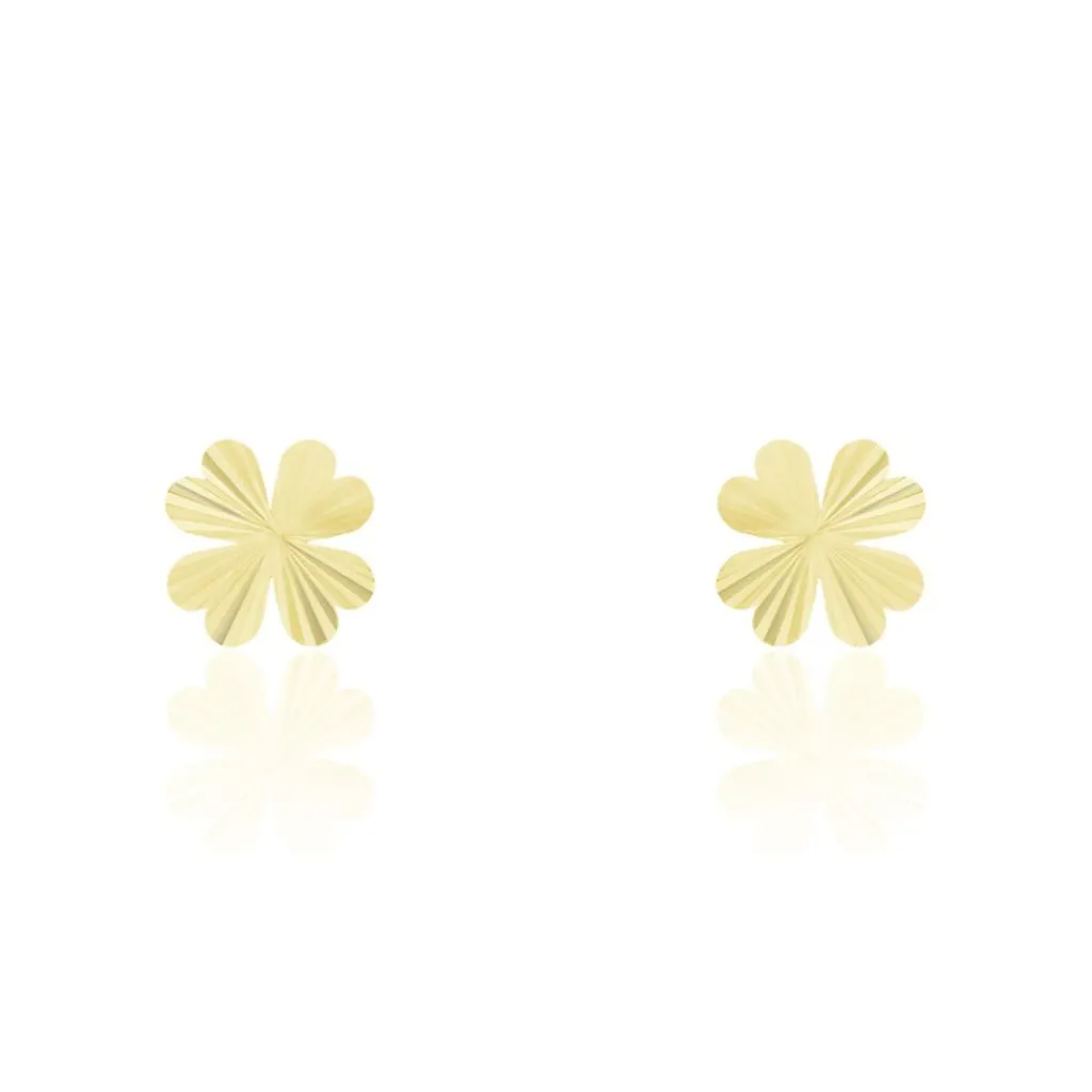 Boucles D’oreilles Puces Boucles Infinies Or Jaune 375/1000 Trèfle Strié
