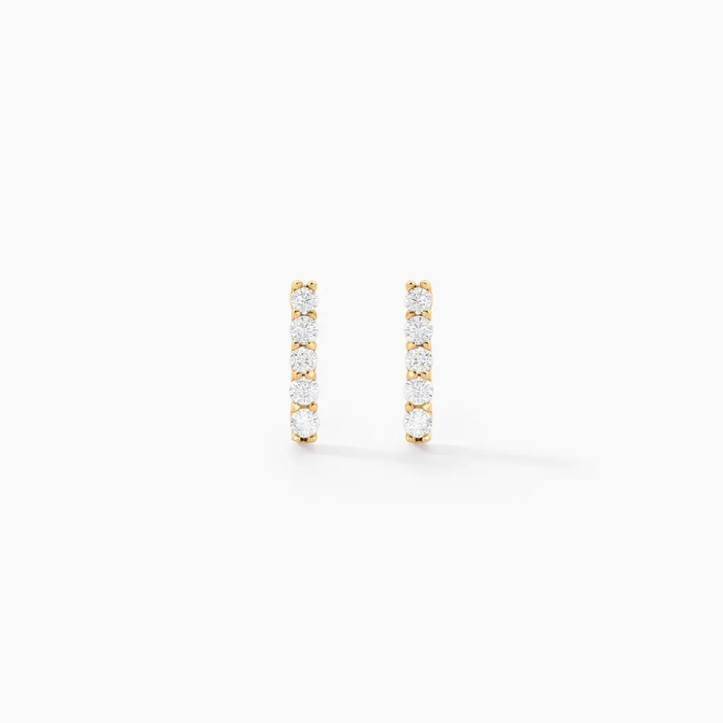 Boucles D’oreilles Puces Or Jaune 750/1000 Barettes Oxyde De Zirconium Serti Griffes Fermoir Papillon