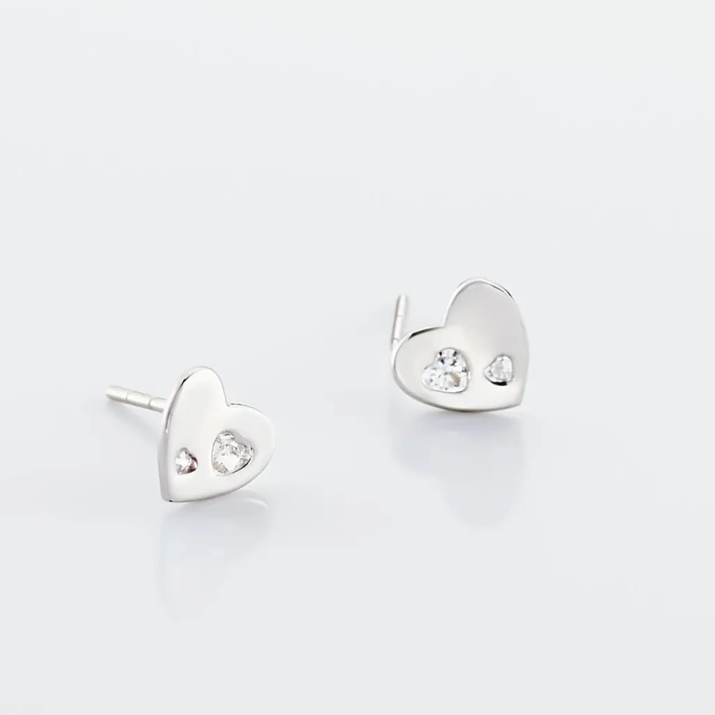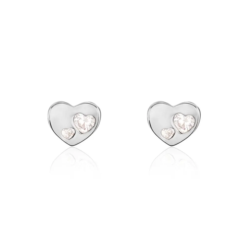 Boucles D’oreilles Or Blanc 375/1000 C艙ur Plein Avec Oxydes De Zirconium