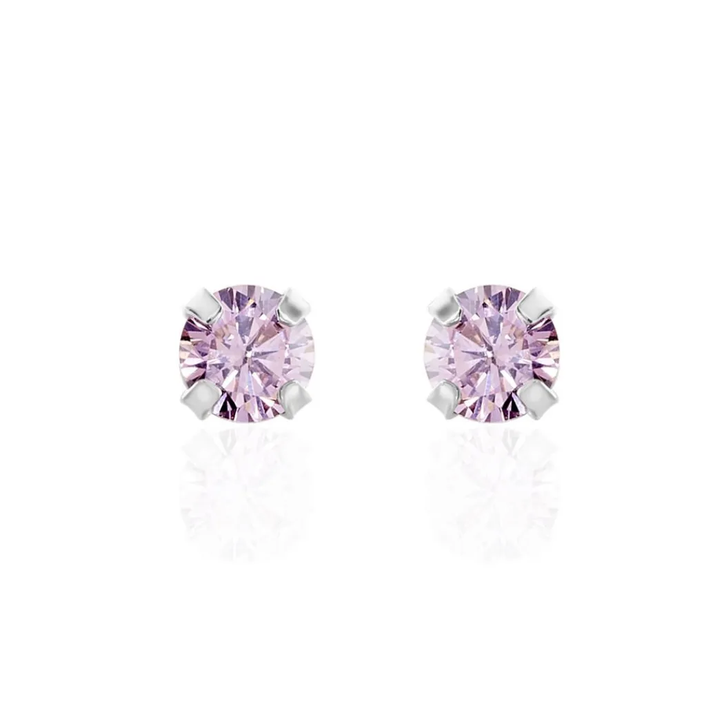 Boucles D’oreilles Or Blanc 375/1000 Puce Oxyde De Zirconium Rose 3mm