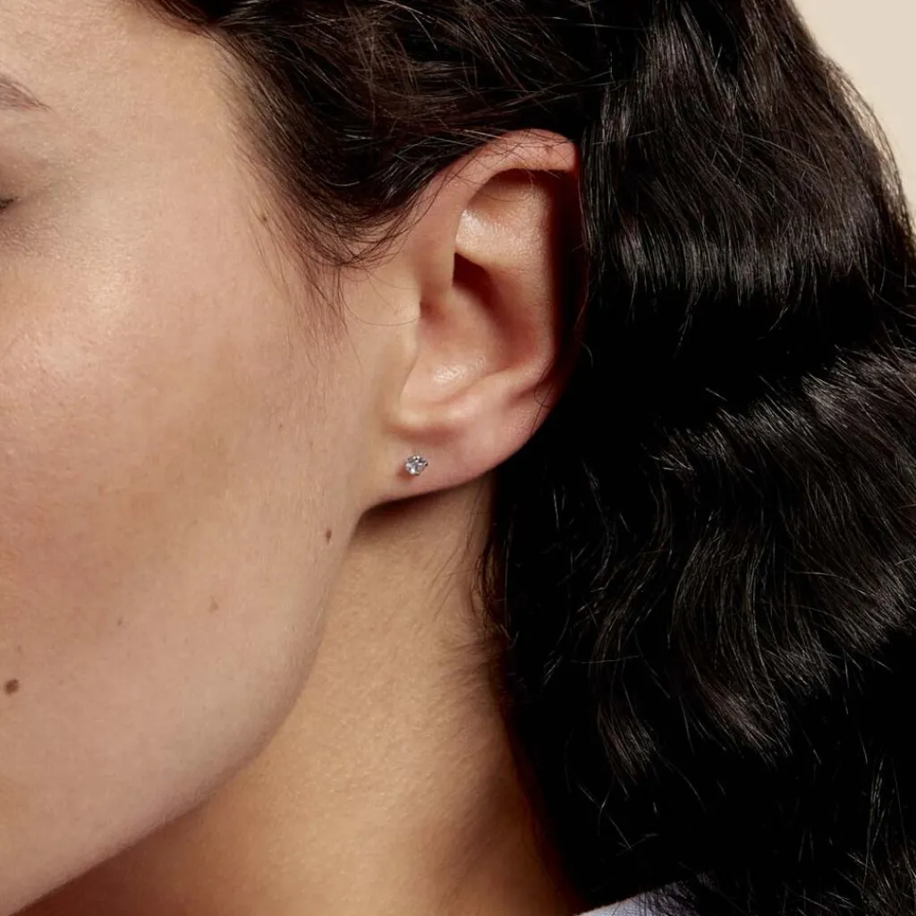 Boucles D’oreilles Or Blanc 375/1000 Puce Oxyde De Zirconium Bleu 3mm