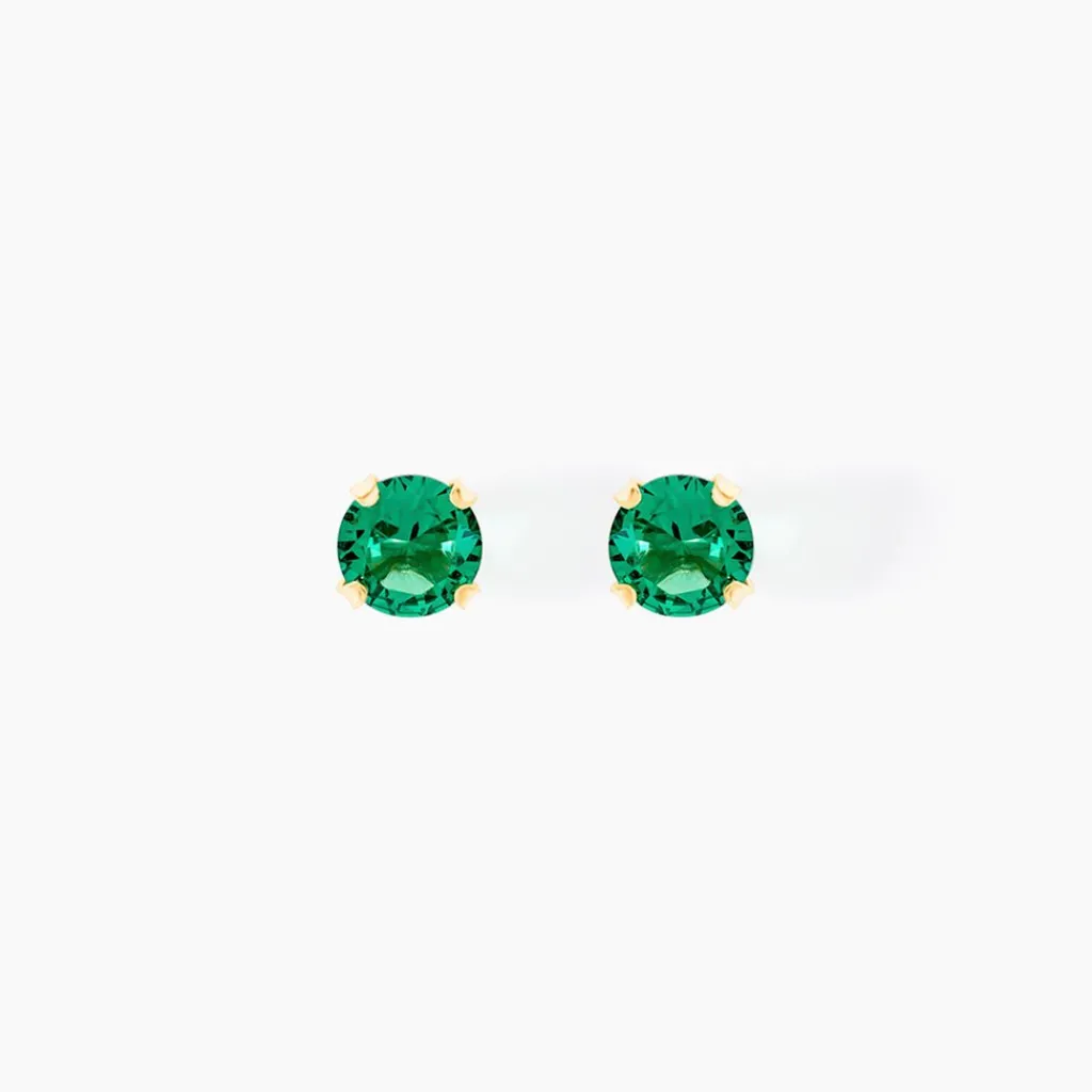 Boucles D’oreilles Puces Or Jaune 375/1000 Oxyde De Zirconium Verts 4mm