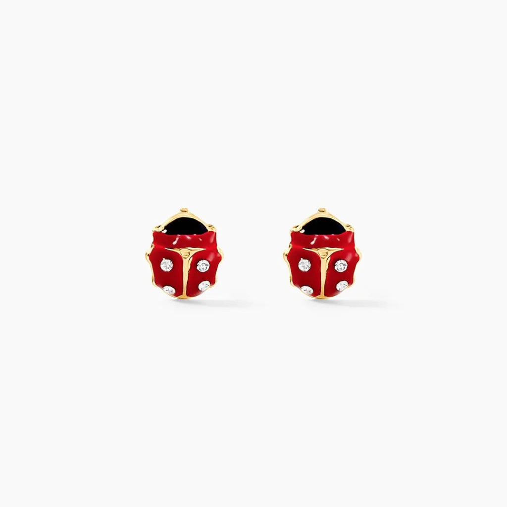 Boucle D’oreilles Puces Or Jaune 375/1000 Coccinelles Email Rouge Et Oxydes De Zirconium