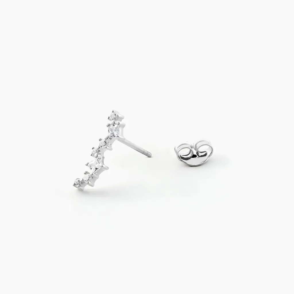 Boucles D’Oreilles Grimpantes Argent Blanc 925/1000 Oxydes De Zirconium Carrés Serti 4 Griffes
