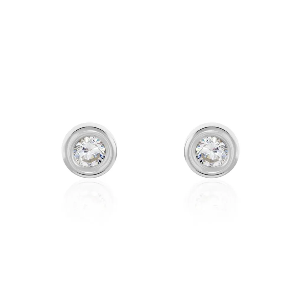 Boucles D’oreilles Or Blanc 375/1000 Oxyde De Zirconium Serti Pneu 4mm