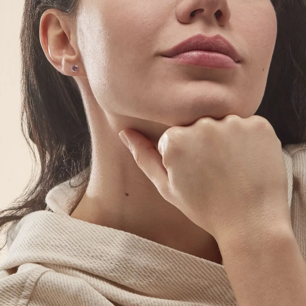 Boucles D’oreilles Puce Or Blanc 375/1000 Améthyste 4mm