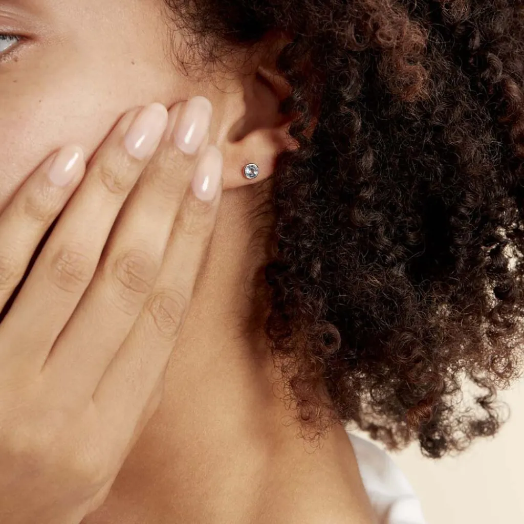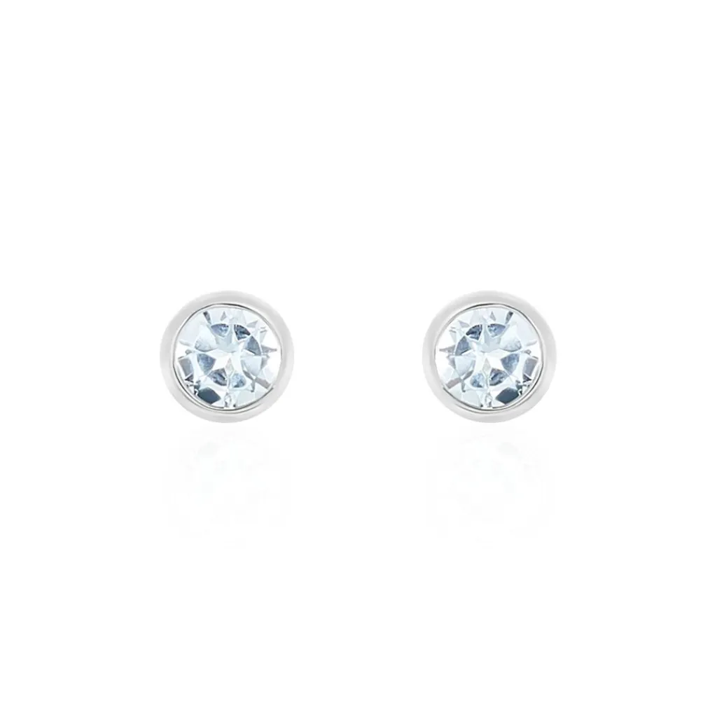 Boucles D’oreilles Or Blanc 375/1000 Puce Topaze Bleue 4mm