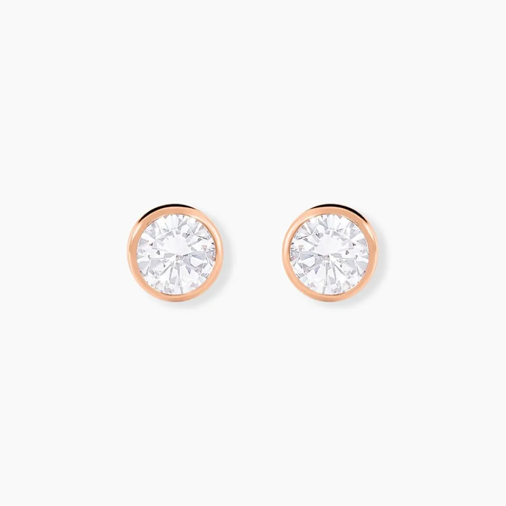 Boucles D’oreilles Or Rose 375/1000 Oxyde De Zirconium 5mm