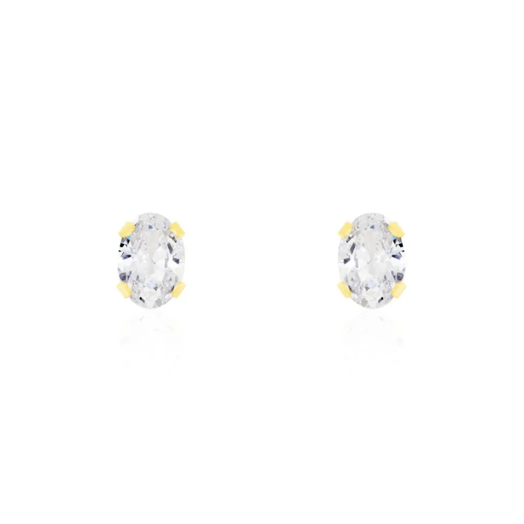 Boucles D’oreilles Puces Or Jaune 375/1000 Ovales Serti 4 Griffes Oxydes De Zirconium 7x5mm