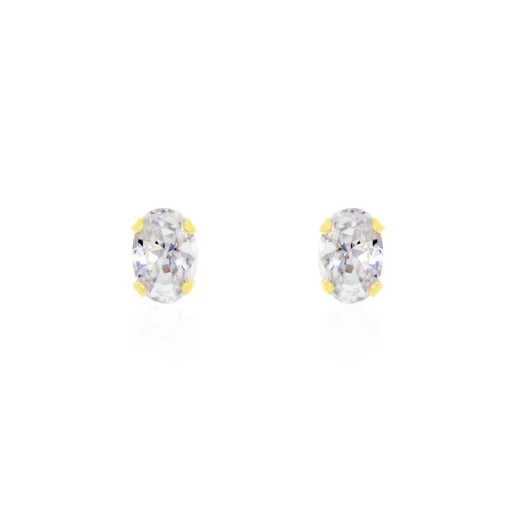 Boucles D’oreilles Puces Or Jaune 375/1000 Ovales Serti 4 Griffes Oxydes De Zirconium 6x4mm
