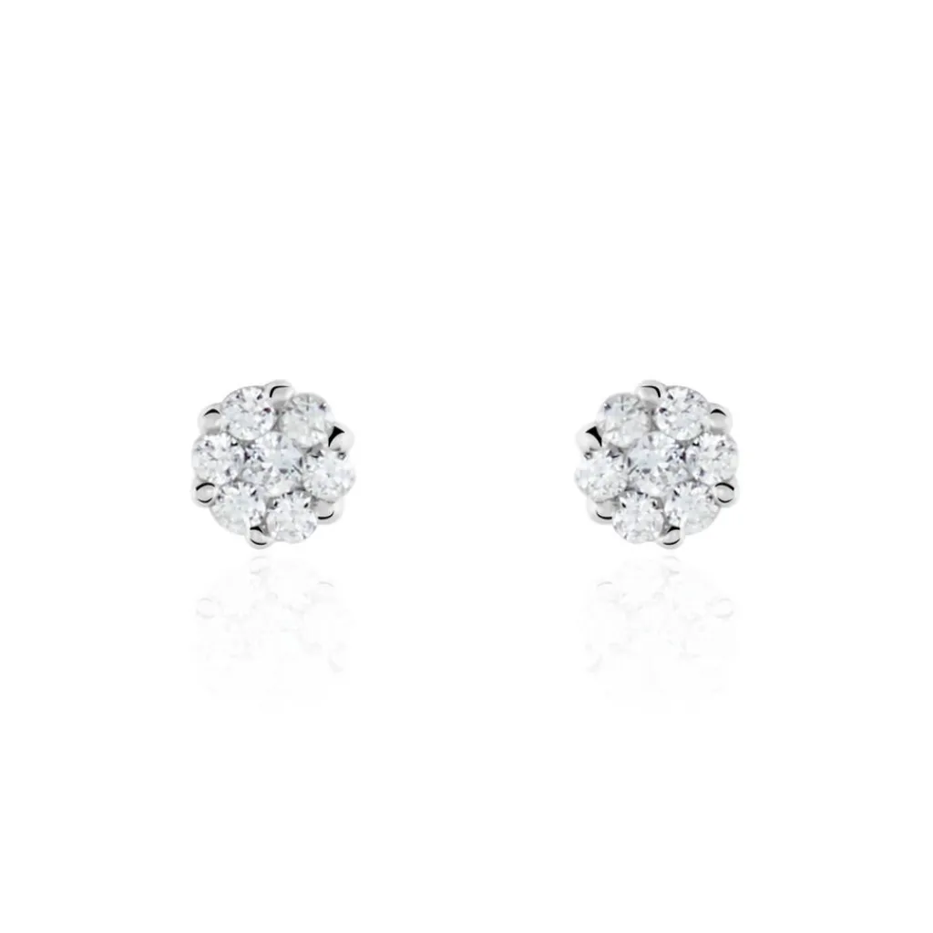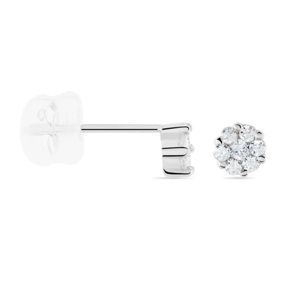 Boucles D’oreilles Or Blanc 375/1000 Fleur Avec Poussette Silicone Oxydes De Zirconium