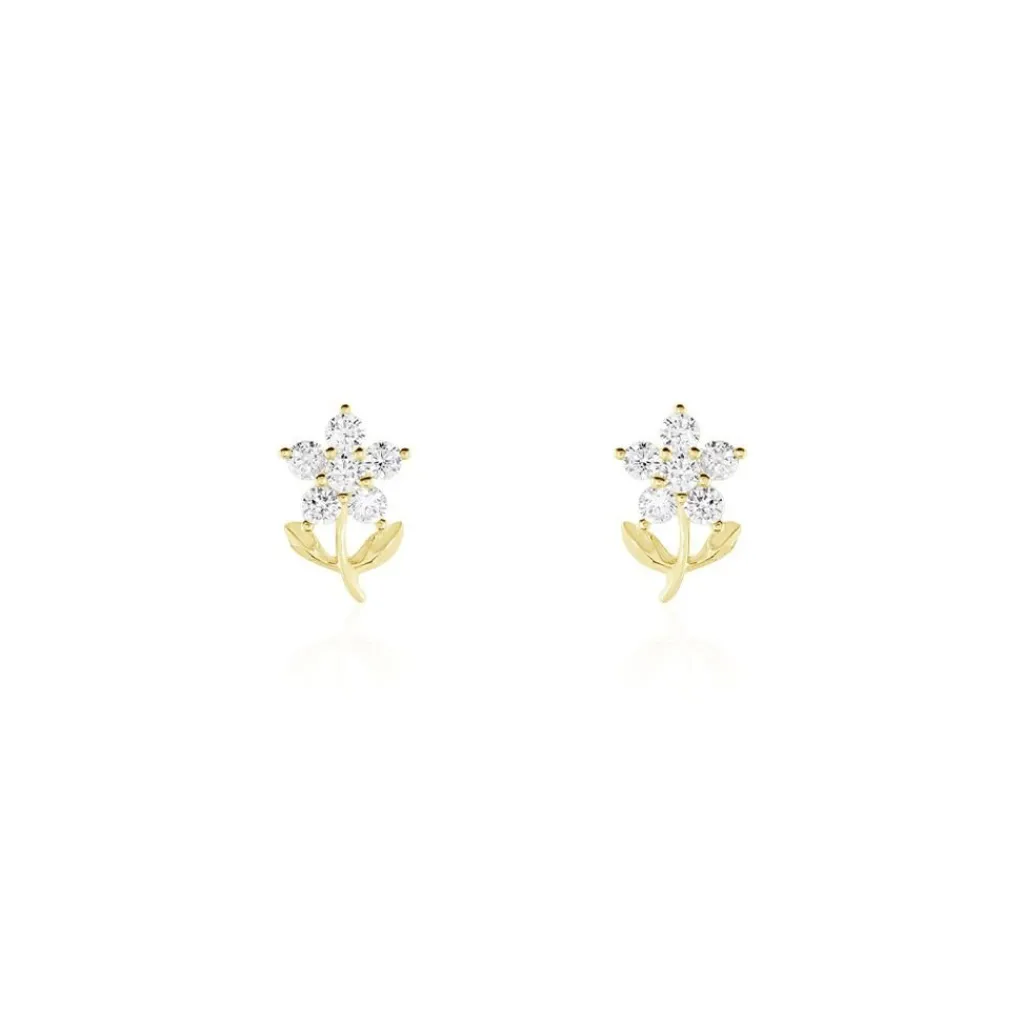 Boucles D’oreilles Or Jaune 375/1000 Formes Fleurs Oxydes De Zirconium