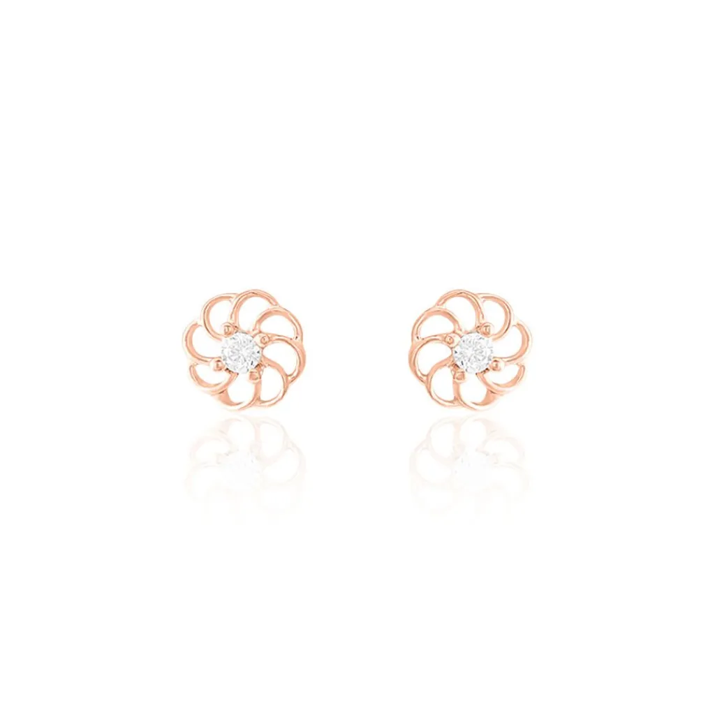 Boucles D’oreilles Puce Or Rose 375/1000 Fleur 1 Oxyde De Zirconium