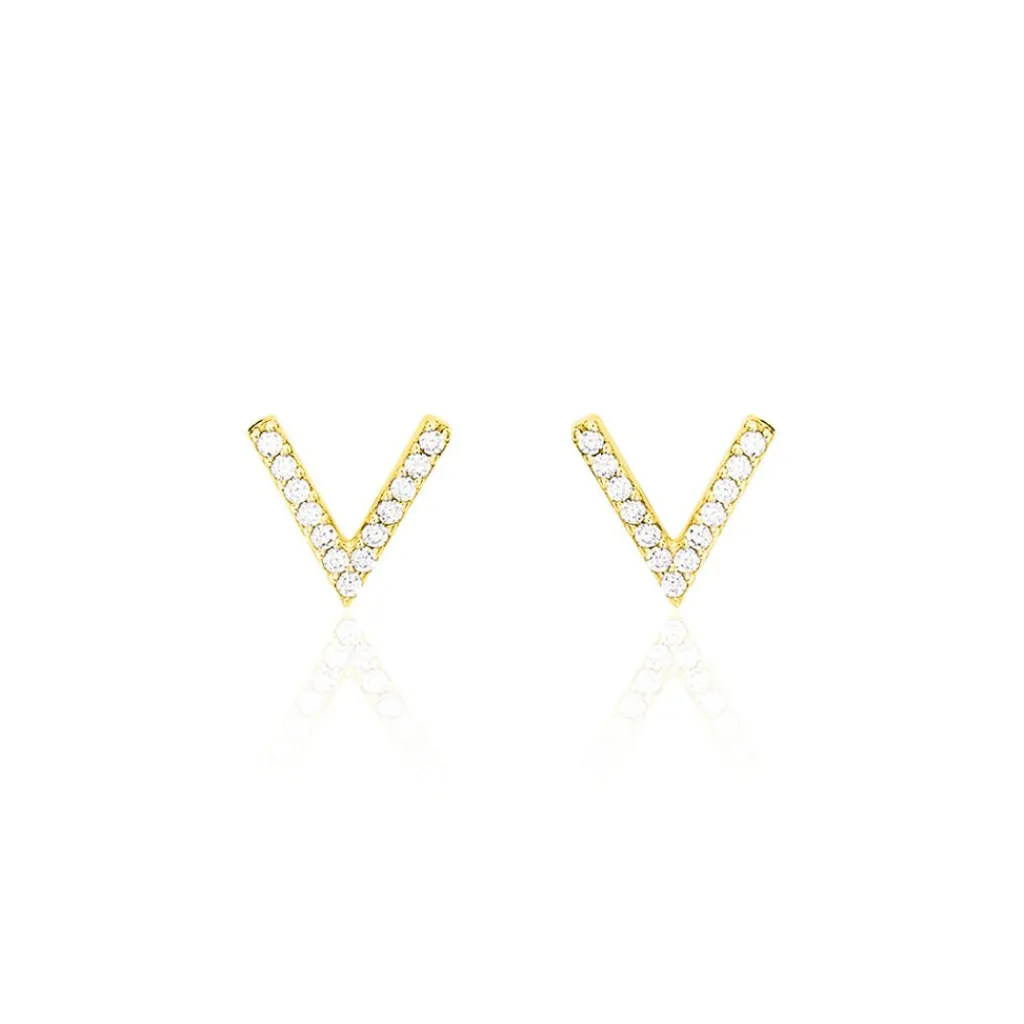 Boucles D’oreilles Or Jaune 375/1000 Puces Motifs V Pavage Oxydes De Zirconium