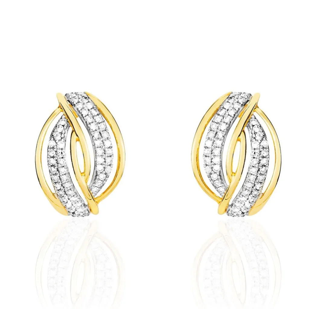 Boucles D’oreilles Or Jaune 375/1000 Croisées Diamants
