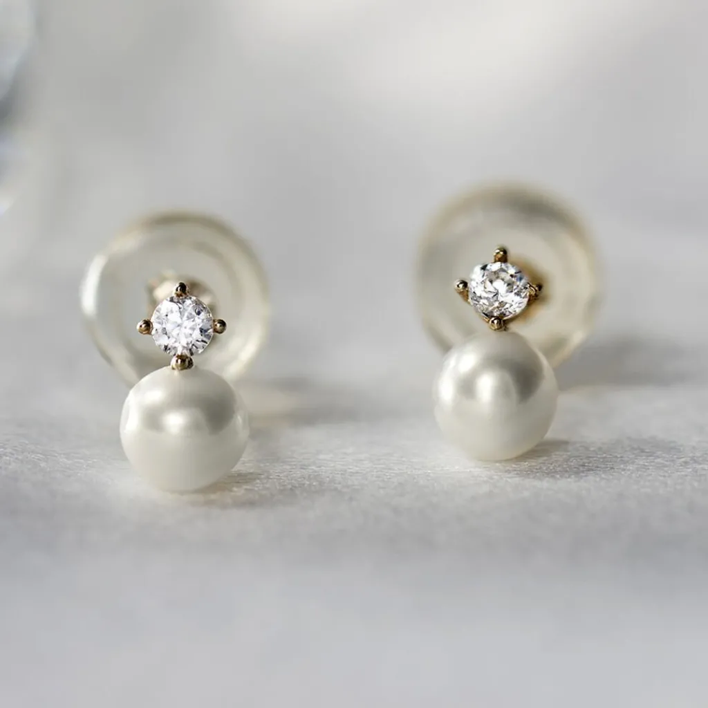 Boucles D’oreilles Or Jaune 375/1000 Perles De Cultures Et Oxydes De Zirconium 4mm