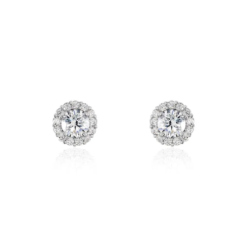 Boucles D’oreilles Puces Argent Blanc 925/1000 Oxydes De Zirconium