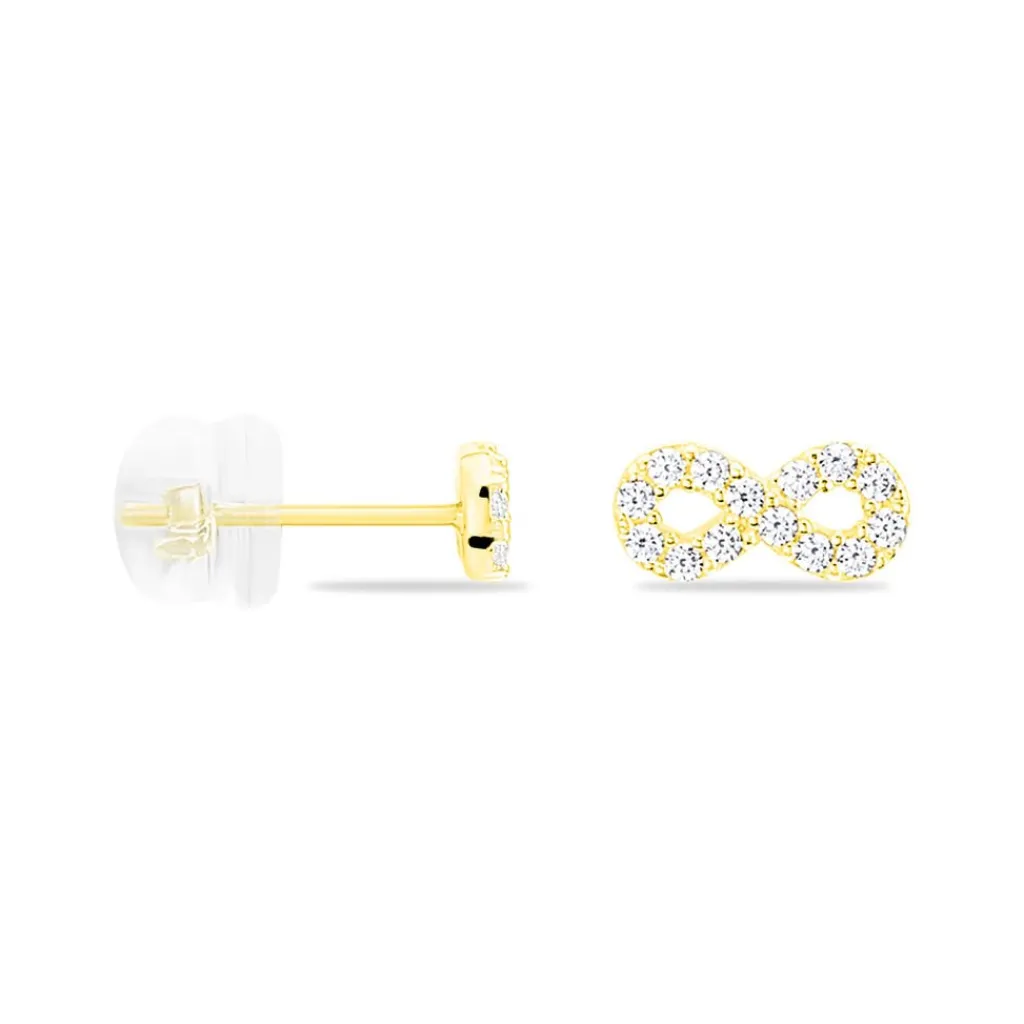 Boucles D’oreilles Puces Or Jaune 375/1000 Formes Infinis Oxydes De Zirconium