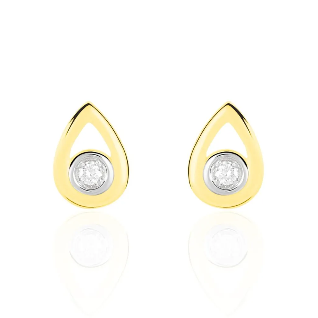 Boucles D’oreilles Or Jaune 375/1000 Puces Motifs Gouttes Ajoures Diamants Centraux 0.038ct