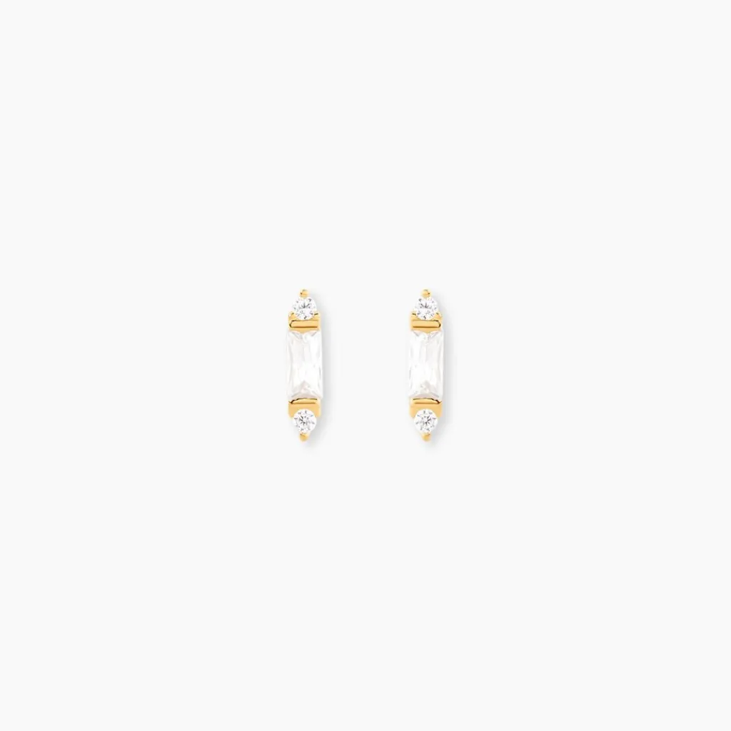 Bo Puces Or Jaune 375/1000 Oxyde De Zirconium Blanc Serti 2 Griffes