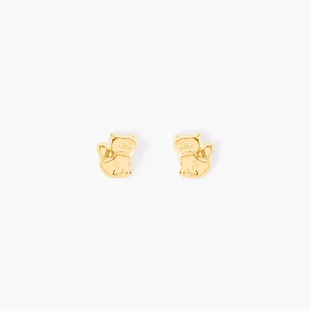 Boucles D’oreilles Or Jaune 375/1000 Puce Chat