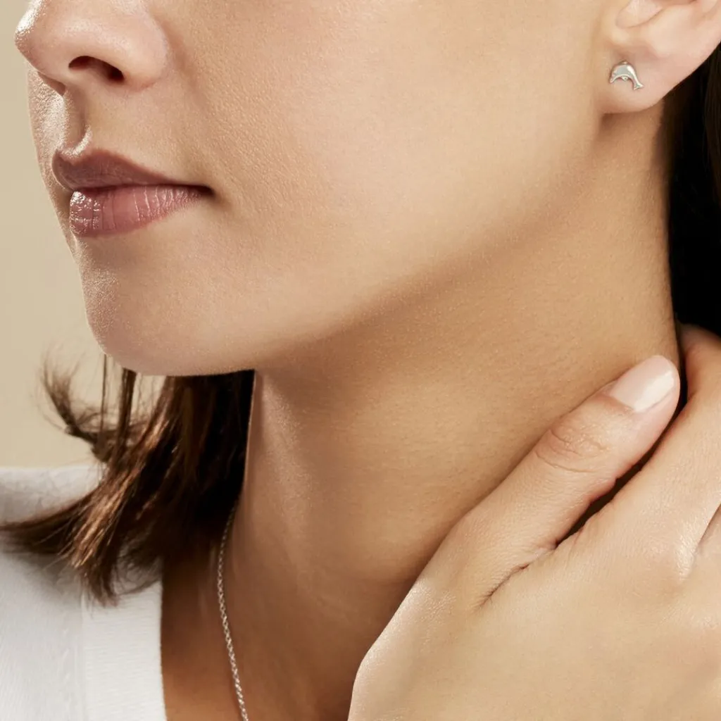 Boucles D’oreilles Or Blanc 375/1000 Dauphins