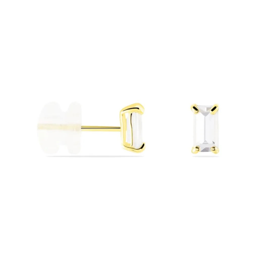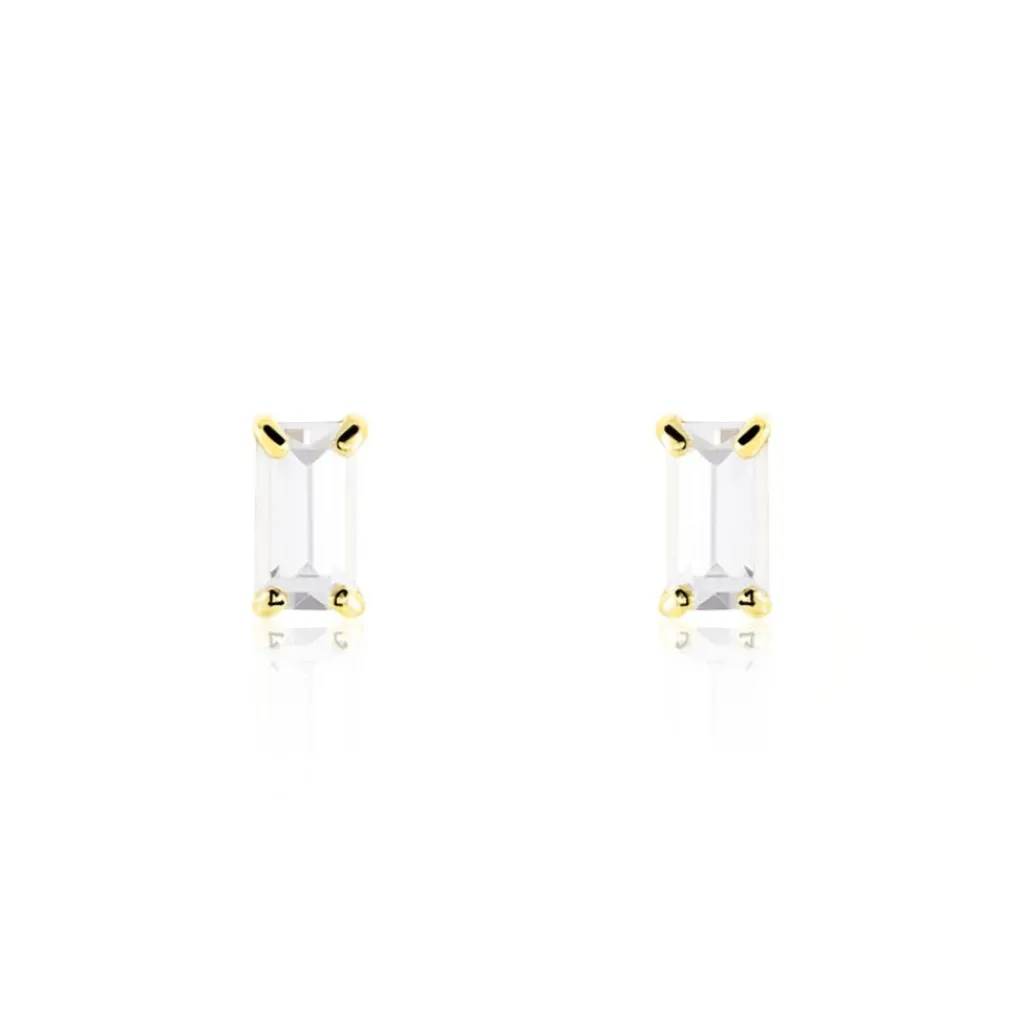 Boucles D’oreilles Puces Or Jaune 375/1000 Rectangles Serti Griffes Oxydes De Zirconium 3x5mm