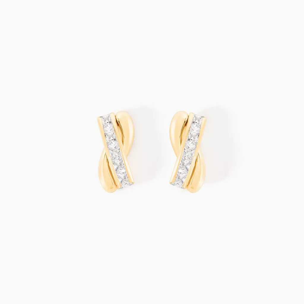 Boucles D’oreilles Puces Or Jaune 375/1000 Formes Croisées Oxydes De Zirconium Serti Rail