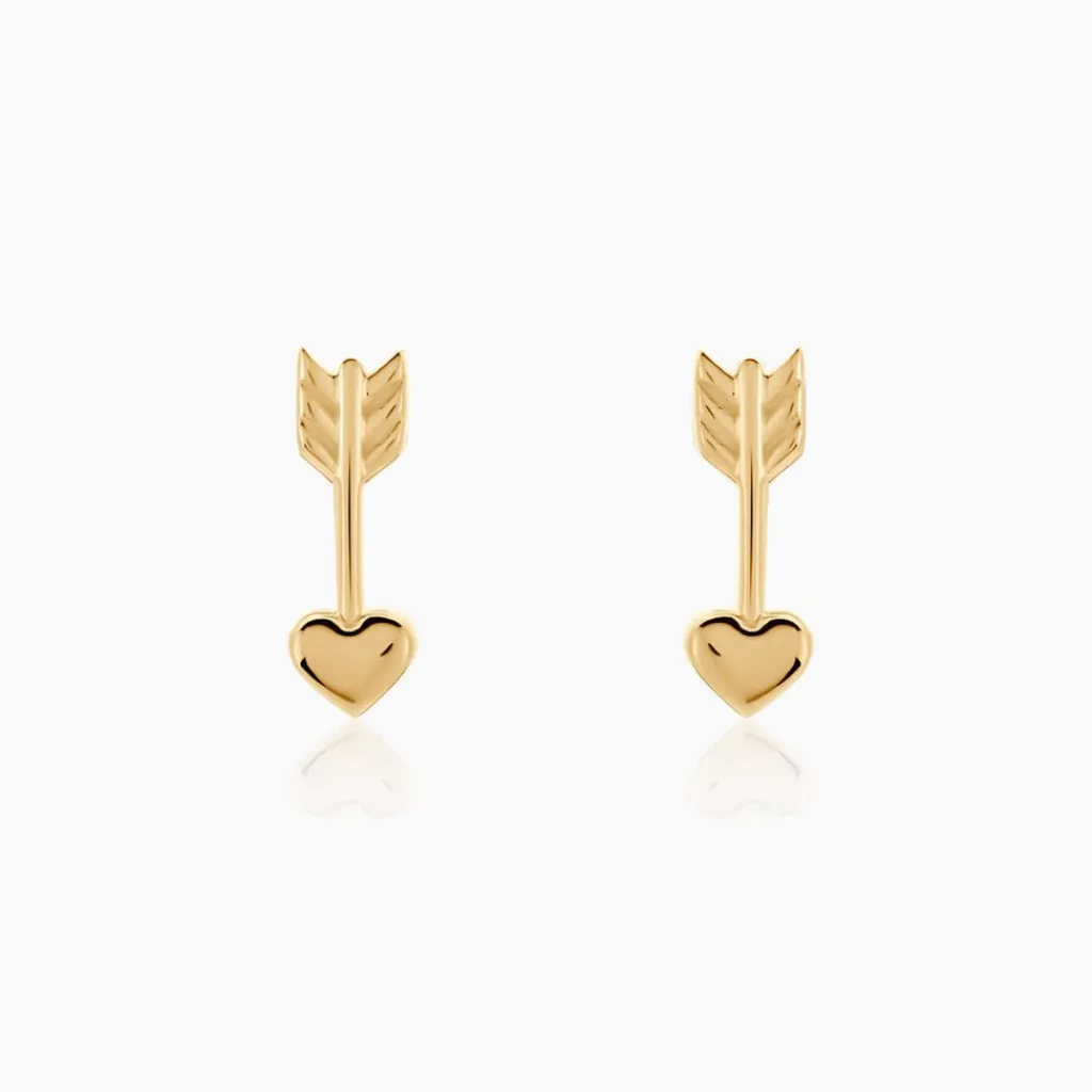 Boucles D’oreilles Puces Plaqué Or Jaune Flèches Forme C艙ur