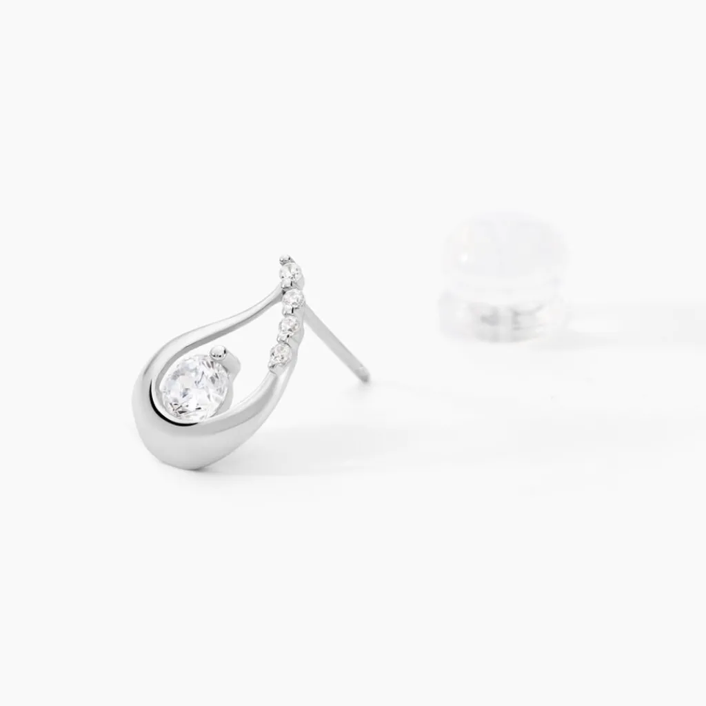 Boucles D’oreilles Puce Or Blanc 375/1000 Goutte Oxydes De Zirconium