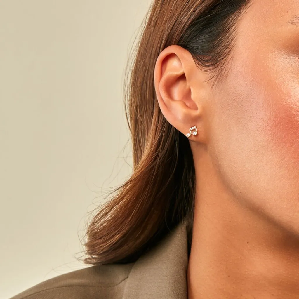 Bo Puces Or Jaune 375/1000 Note De Musique Oxyde De Zirconium Blanc Serti Clos