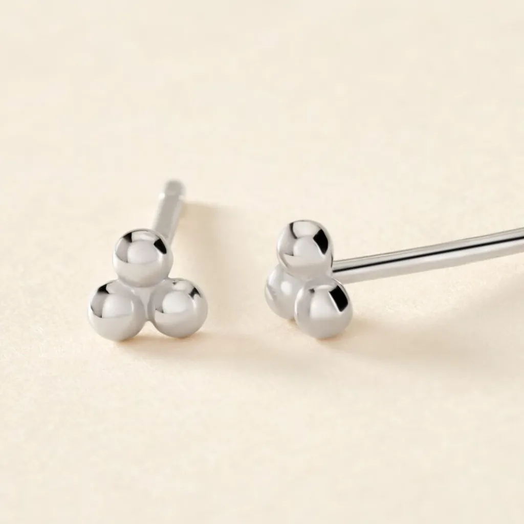 Boucles D’oreilles Puces Argent Blanc 925/1000 3 Boules